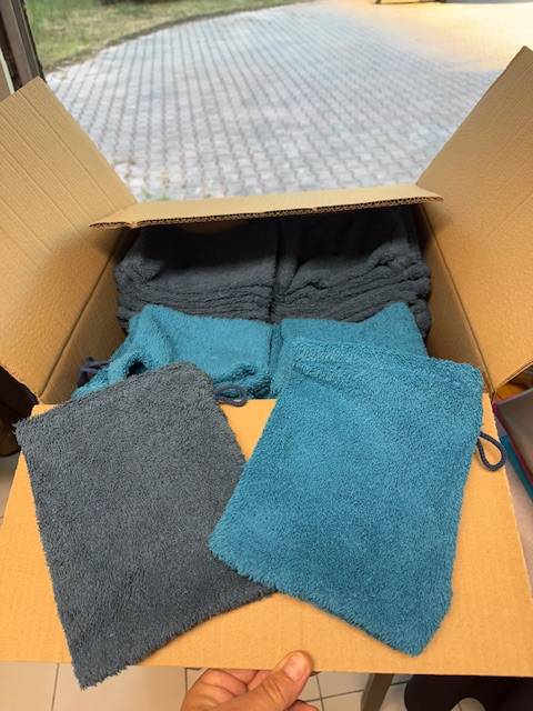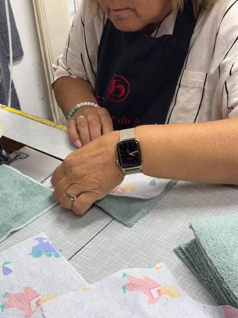 Nous avons eu le plaisir de confectionner pour cette crèche 120 gants en éponge bio, aux dimensions parfaites de 17x21 cm, dans de joyeuses couleurs bleu roi et vert lagon.